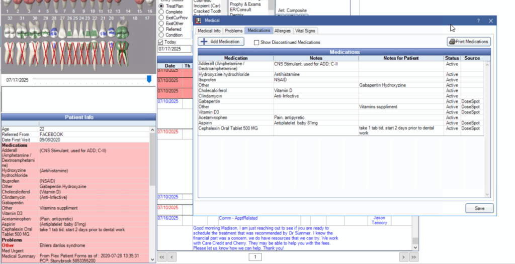 DoseSpot has changed to only syncing data 1-way, from dose spot into open dental. Nothing put directly into open dental writes back into dose spot. As a result, you now have to remove any medications from DoseSpot before removing it from the chart in Open Dental. This is only necessary when the medication appears in DoseSpot. If it’s not there already, you can remove it directly from Open Dental.